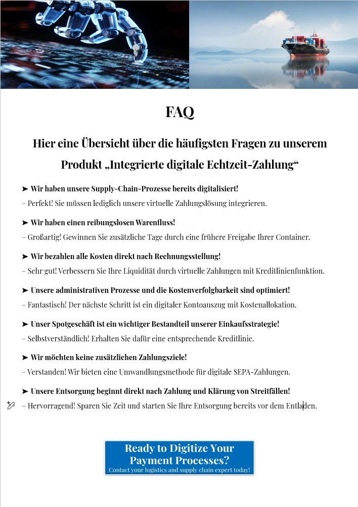 Erfahren Sie in diesem Abschnitt, wie digitale Zahlungen Ihre Versandlogistik optimieren und die Zusammenarbeit zwischen Kunden und Lieferanten verbessern.